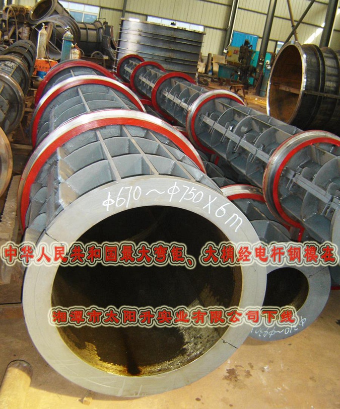 中華人民共和國(guó)最大大彎矩、大梢經(jīng)電桿鋼模在湘潭市太陽升實(shí)業(yè)有限公司下線